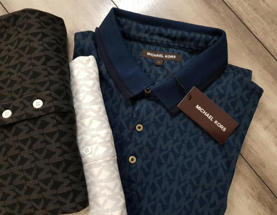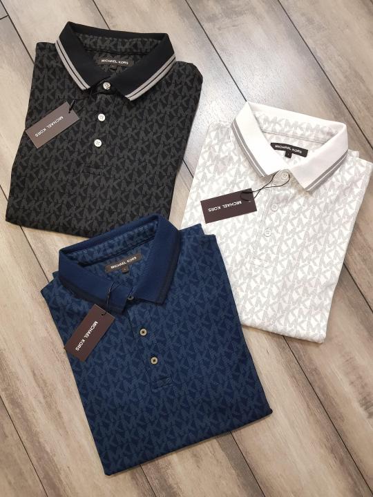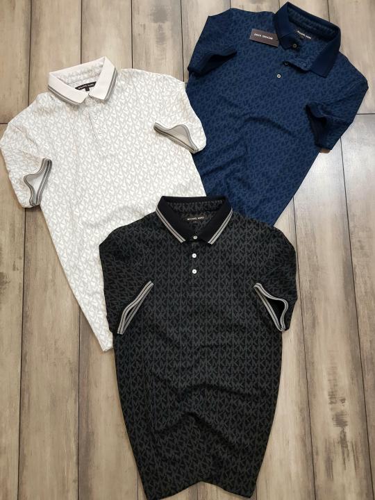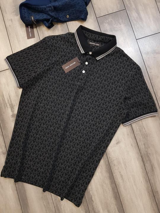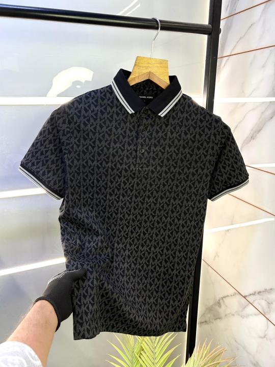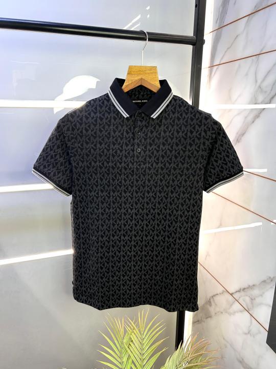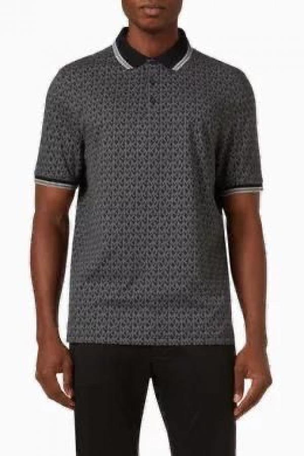 Michael_Kors Monogram Print Black Polo Premium Collar neck T-shirt F2247-BL