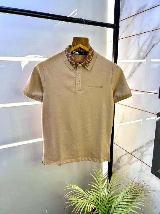 Home T-Shirts Sale Karl Lagerfeld Brown Polo Premium Collar Neck T-shirt F2779-BR